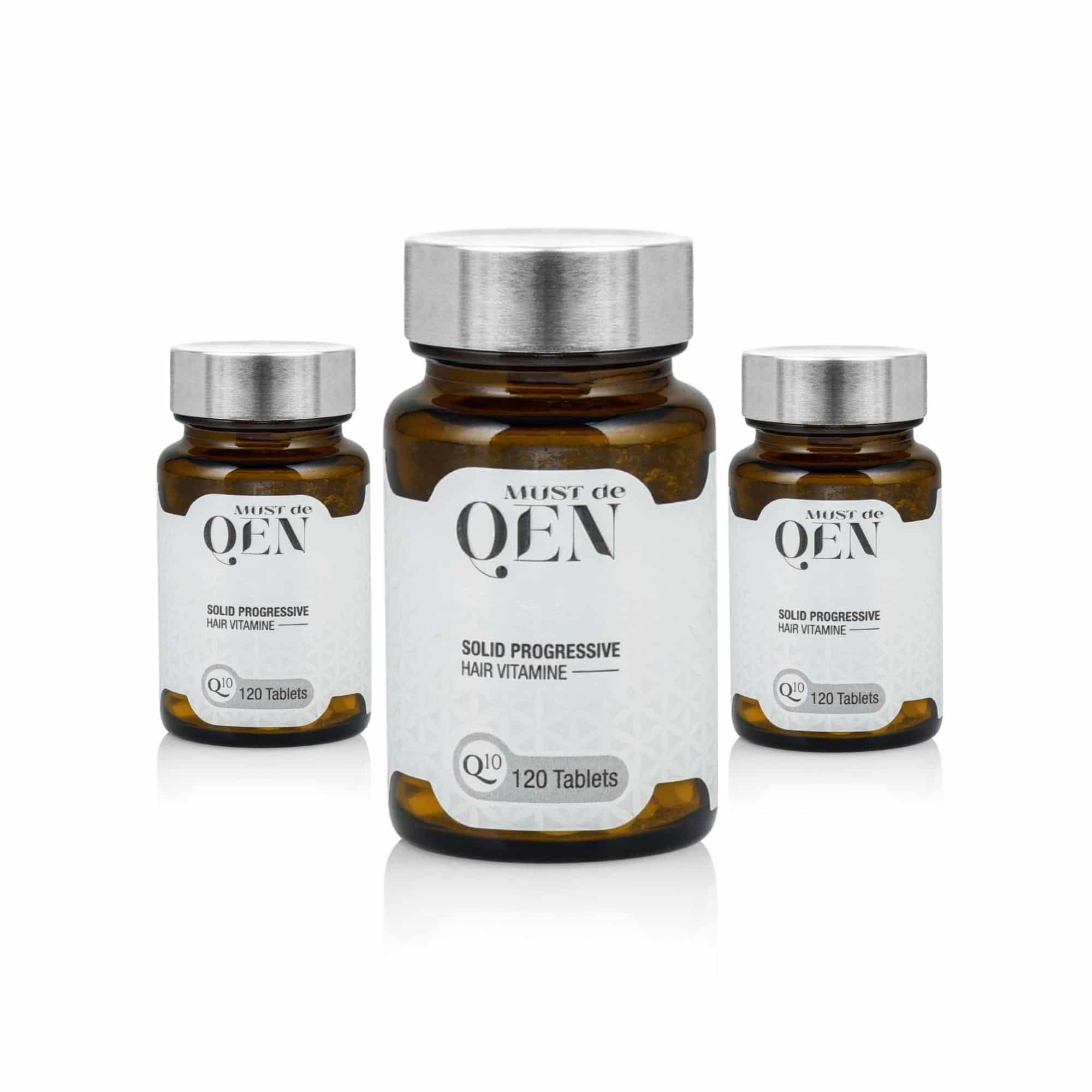 Buy 2 Get 1 Free bundle of Must De Qen Q10 hair vitamins — 360 tablets for a full 12 months of Turkish-formulated CoQ10, biotin and zinc supplementation. Save 33%. ISO and GMP certified.