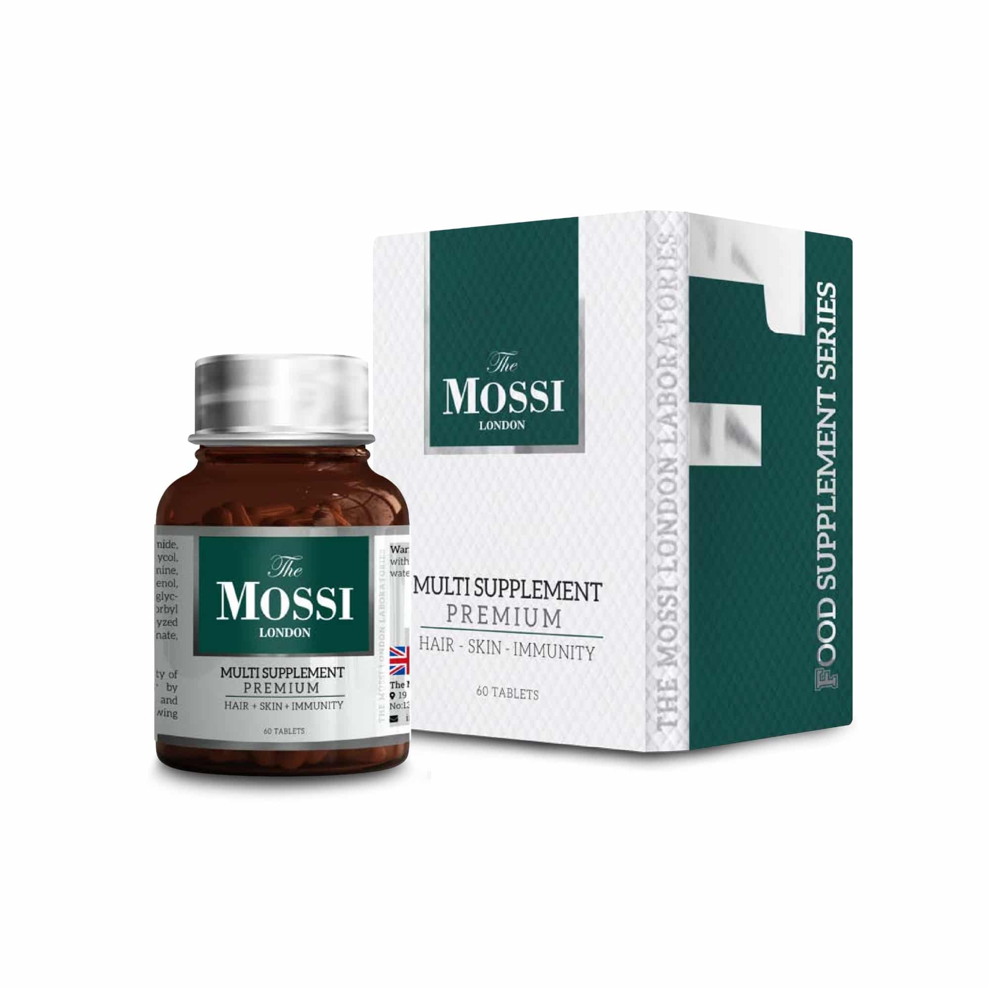 Vitamin Premium 60 tablets for 2-month hair growth starter support. The Mossi London Turkish formula with biotin, zinc and essential minerals. ISO and GMP certified.